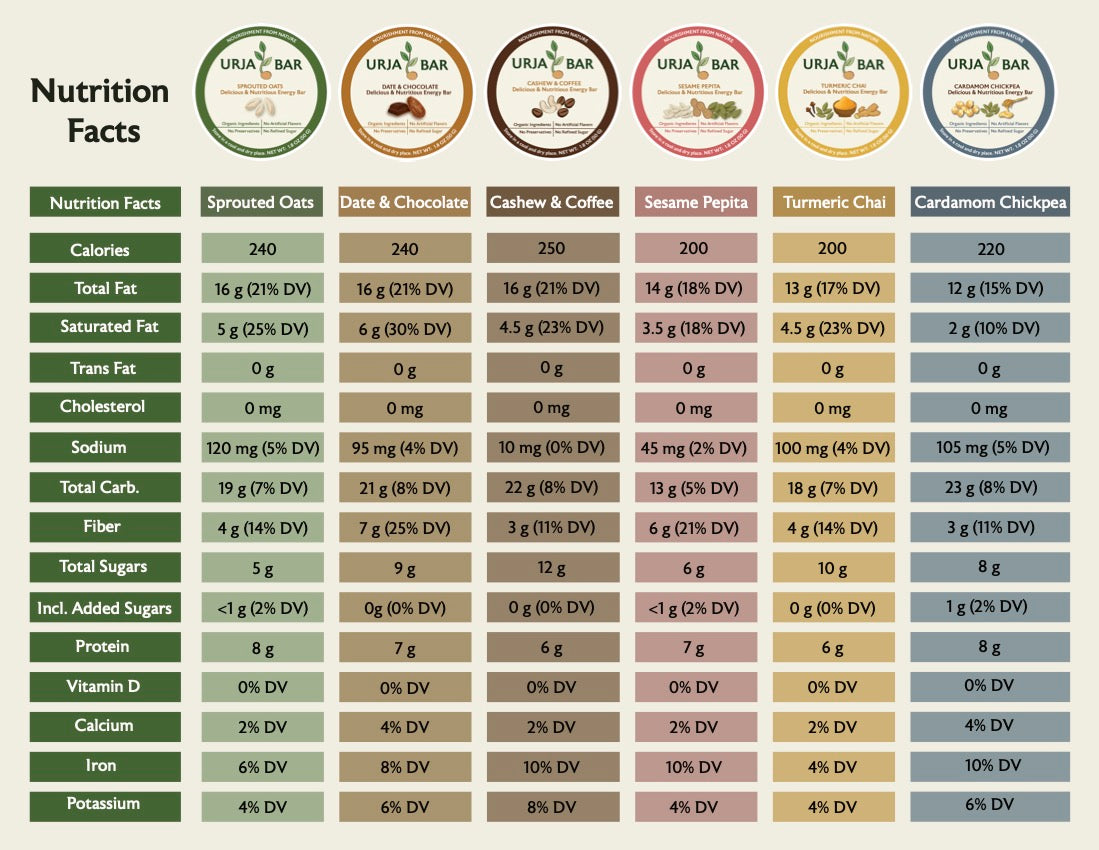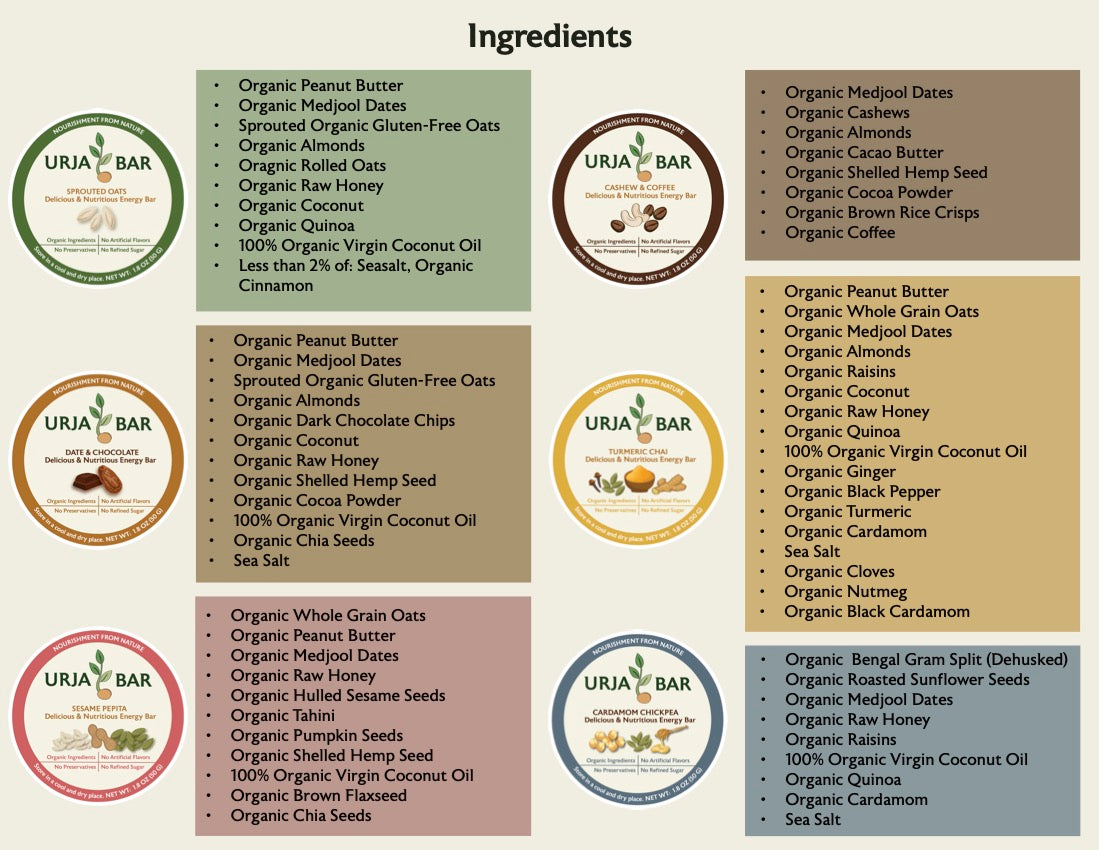 Each Urja bar is full of energy, nutrition and taste! Have this bar before or after any physical activity to get some quick energy or as a snack anytime during the day.